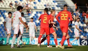 ตัวสำรองทีมกระทิงดุ ปาโบล ฟอร์นาลส์ โชว์ของกระชากลากมาตะบันเต็มเกือกก่อนหมดเวลา 1 นาทีเป็นประตูชัยช่วยให้สเปนเฉือนชนะเบลเยี่ยม 2-1 คว้า 3 คะแนนสำคัญก่อนตัดสินชะตากับโปแลนด์ในเกมสุดท้ายของรอบแบ่งกลุ่ม