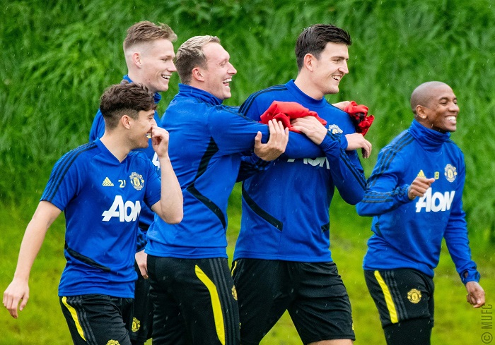 แฟนบอลปีศาจแดง แมนเชสเตอร์ ยูไนเต็ด เห็นภาพการฝึกซ้อมชุดล่าสุดของสโมสรแล้วใจไม่ค่อยดี ไล่ยิงมุกใส่ แฮร์รี่ แม็คไกวร์ ว่าอย่าไปอยู่ใกล้ ฟิล โจนส์ กับ แอชลี่ย์ ยัง เดี๋ยวจะติดเชื้อความห่วย