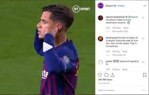 มิดฟิลด์ของลิเวอร์พูล อเล็กซ์ อ๊อกซ์เลด-แชมเบอร์เลน ออกโรงป้อง เพื่อนเก่า ฟิลิปเป้ คูตินโญ่ ว่าไม่จำเป็นต้องพิสูจน์ตัวเองแล้ว หลังย้ายจากบาร์เซโลน่าไปอยู่กับบาเยิร์น มิวนิค