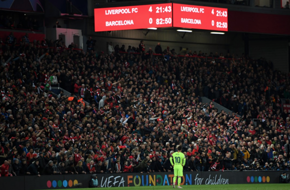 เกมที่แอนฟิลด์ อาซูลกราน่า ตุนความได้เปรียบจากการชนะนัดแรกในคัมป์ นู 3-0 และมีโอกาสเข้าชิงสูงหากยิงประตูทีมเยือนได้สักลูกเดียว