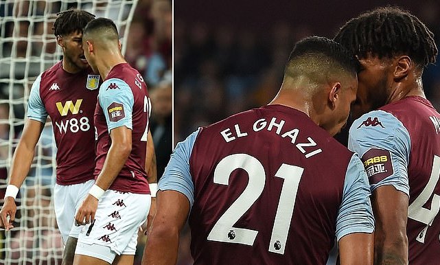 สองนักเตะแอสตัน วิลล่า อันวาร์ เอล กาซี่ และ ไทโรน มิงส์ มีเรื่องกันเองในเกมที่พวกเขาเปิดบ้านเสมอแบบไร้สกอร์กับเวสต์แฮม ยูไนเต็ด เมื่อคืนวันจันทร์ที่ผ่านมา