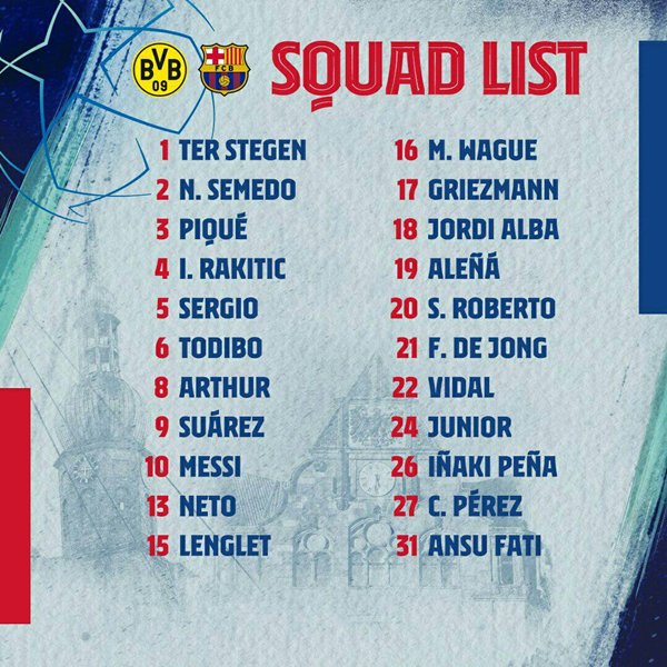 อัจฉริยะลูกหนังชาวอาร์เจนไตน์ของทีมบาร์เซโลน่า ลิโอเนล เมสซี่ หายเจ็บกลับมามีชื่อในทีมบาร์เซโลน่าชุดที่จะบุกเยือน ทีมเสือเหลืองแห่งเยอรมัน โบรุสเซีย ดอร์ทมุนด์ ในศึกแชมเปี้ยนส์ ลีก คืนวันอังคารนี้